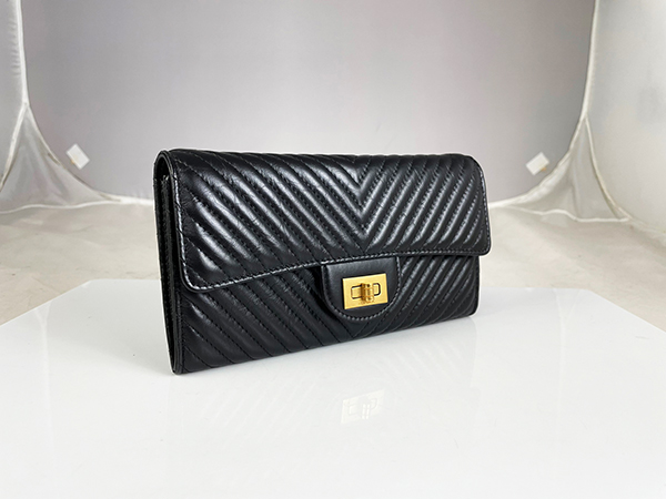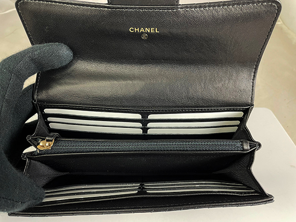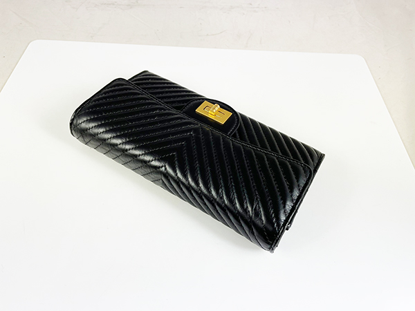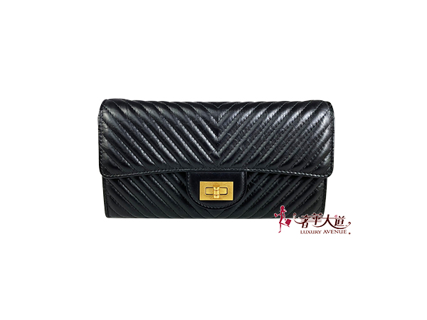 CHANEL藍色丹寧格紋19系列口蓋零錢包AP1787
