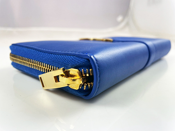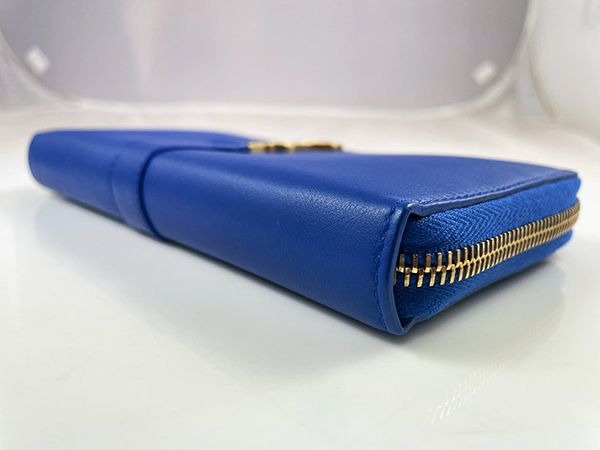 CHANEL藍色丹寧格紋19系列口蓋零錢包AP1787