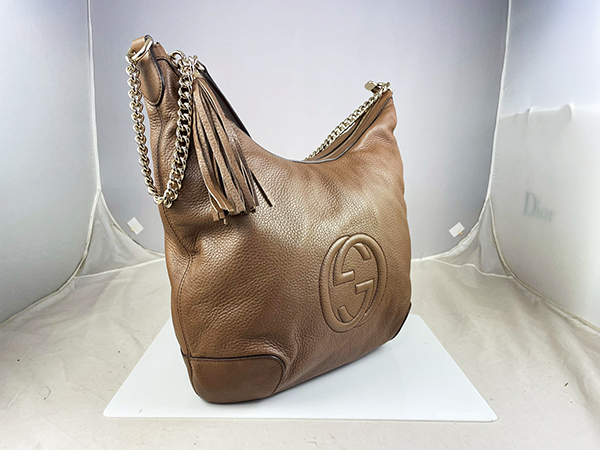 Gucci 藕色緹花Sukey 手提/斜背兩用包 247902