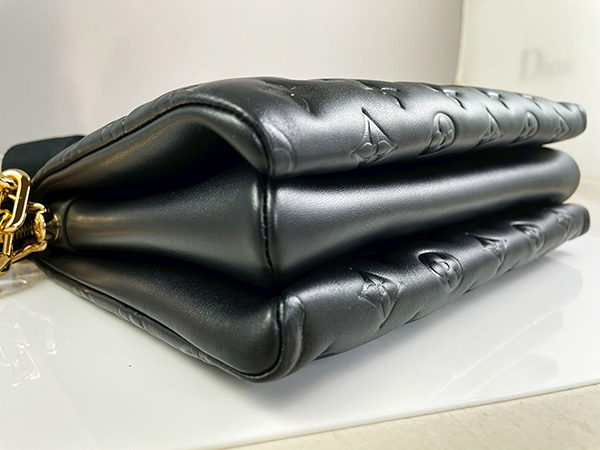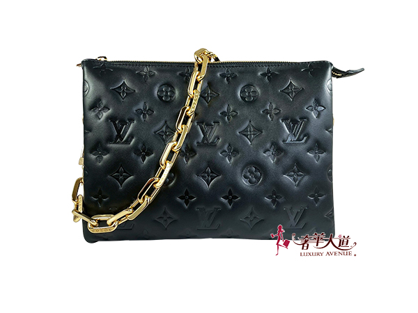 LV 黑色牛皮大LOGO壓紋 Grand Palais金釦手提/斜背包M45811
